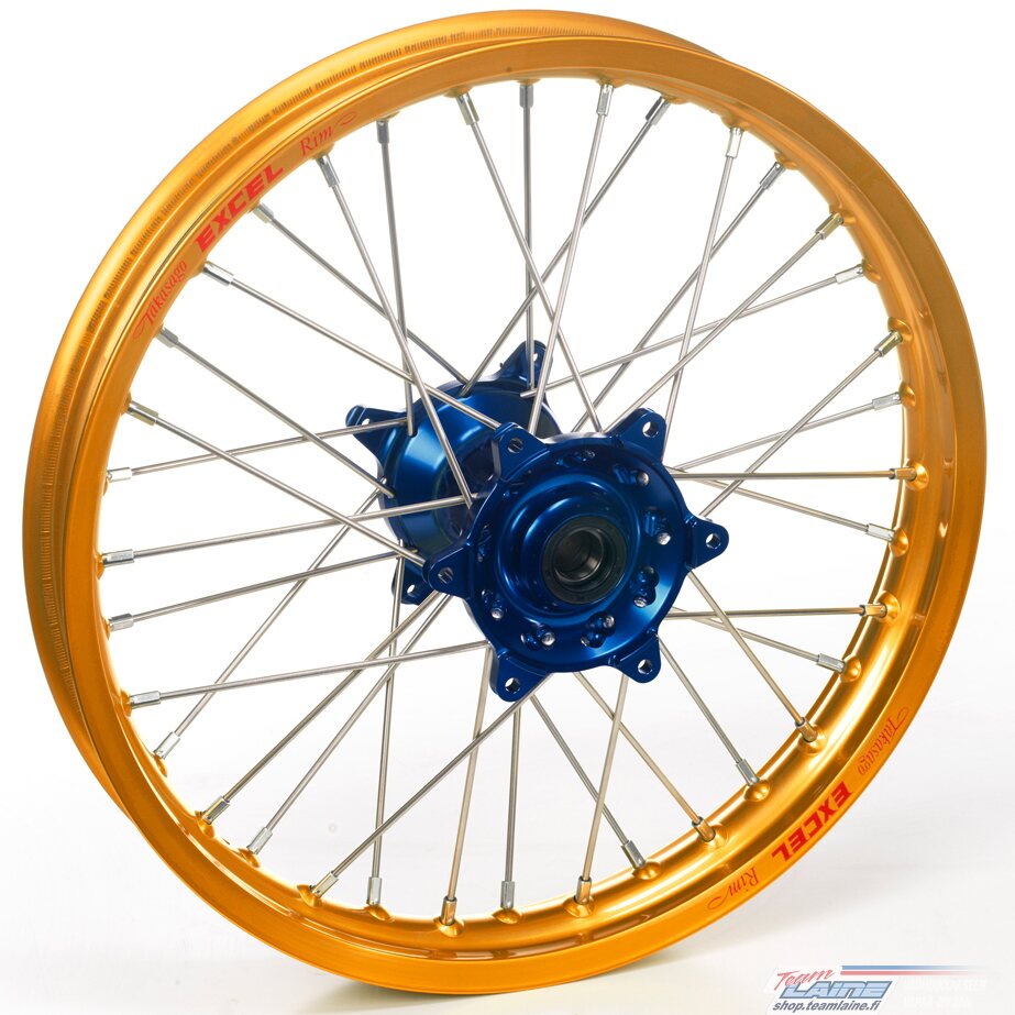 Haan Wheels Complete Wheel, 2,15, 18", REAR, BLUE GOLD, KTM 03-23 450 EXC-F, 03-12 450 SX-F, 18-22 250 EXC TPI/300 EXC TPI, 95-17 250 EXC/300 EXC, 23 250 EXC/300 EXC, 03-23 250 EXC-F, 95-12 250 SX, 03-12 250 SX-F, 10-23 350 EXC-F, 10-12 350 SX-F, 95-16 1