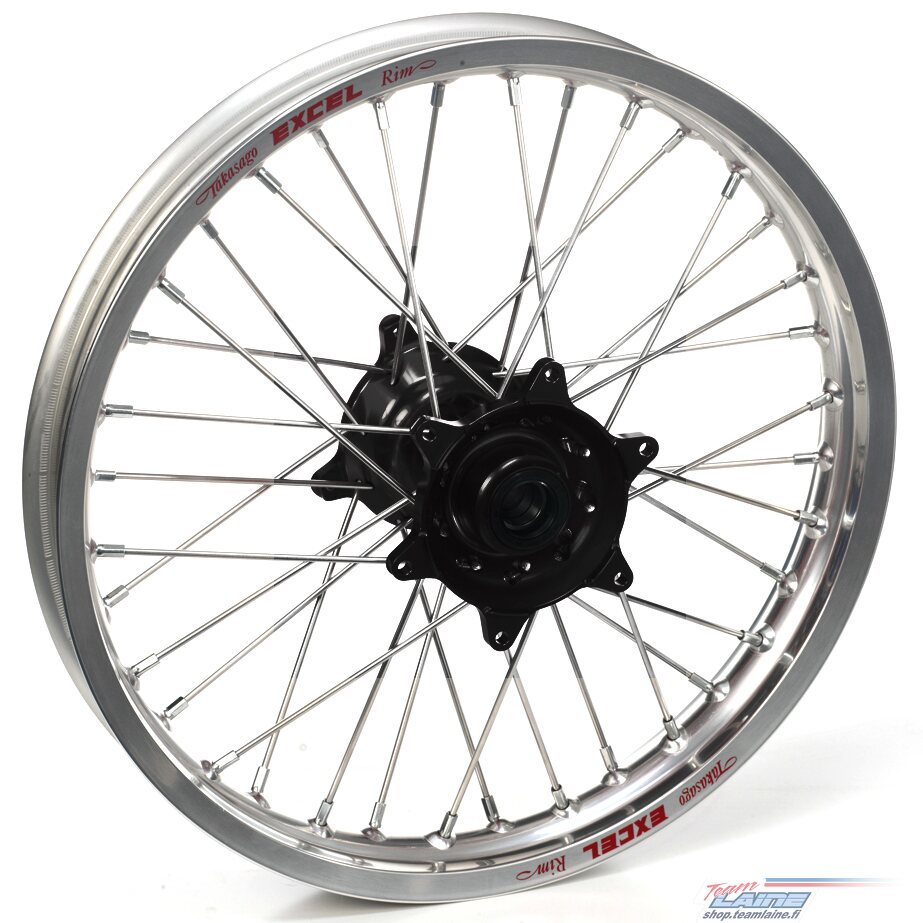 The wheels come complete assembled with stainless steel spokes, Excel rims and Haan Wheels hubs and are finished with a rim tape. The wheel hub is also complete with mounted bearings, seals, spacers, brake disc bolts and rear hub includes sprocket bolts.