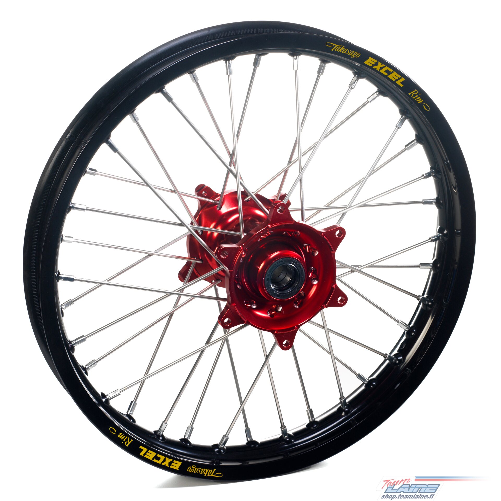 The wheels come complete assembled with stainless steel spokes, Excel rims and Haan Wheels hubs and are finished with a rim tape. The wheel hub is also complete with mounted bearings, seals, spacers, brake disc bolts and rear hub includes sprocket bolts.