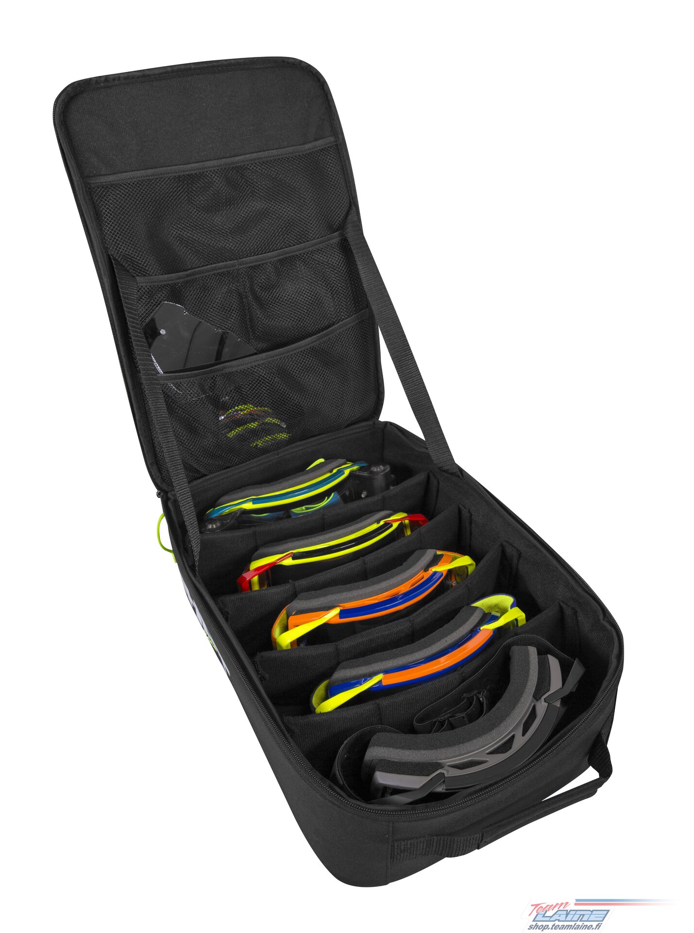 Stores up to 5 goggles and accessories