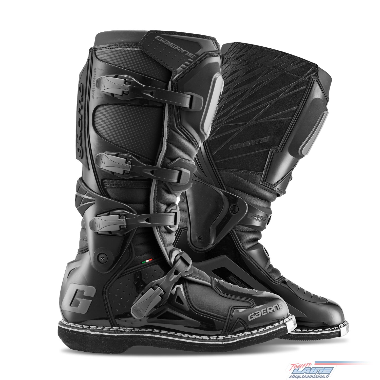New alloy buckles, heavy duty burn guard, toe bumper and the trademark Gaerne sole comlpete the task.