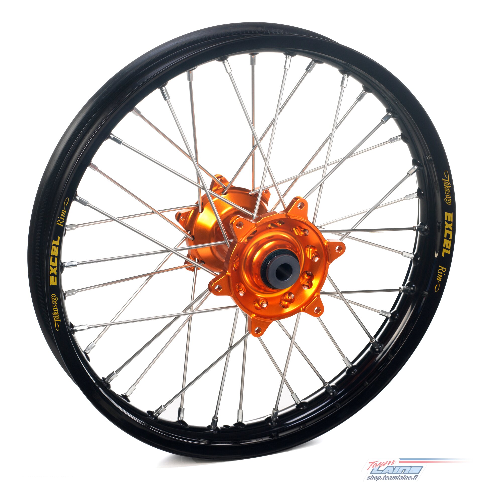 The wheels come complete assembled with stainless steel spokes, Excel rims and Haan Wheels hubs and are finished with a rim tape. The wheel hub is also complete with mounted bearings, seals, spacers, brake disc bolts and rear hub includes sprocket bolts.