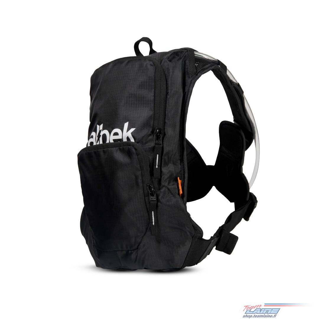 WEIGHT: 400g˜ex bladder DIMENSIONS: 35cm x 32.5cm x8cm DIMENSIONS INCHES: 13.7in x 12.8in x 3.14in MATERIALS: 240D Dull Polyester Ripstop VOLUME: 4L / 244ci˜ cubic inches RECOMMENDED USE : MTB/Moto/Gravel BLADDER ALBEK FFP 2.0L